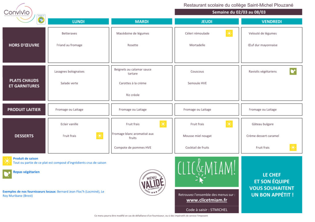 7H30 - 18H00 du lundi au vendredi. Mercredi : 7H30 - 12H15.