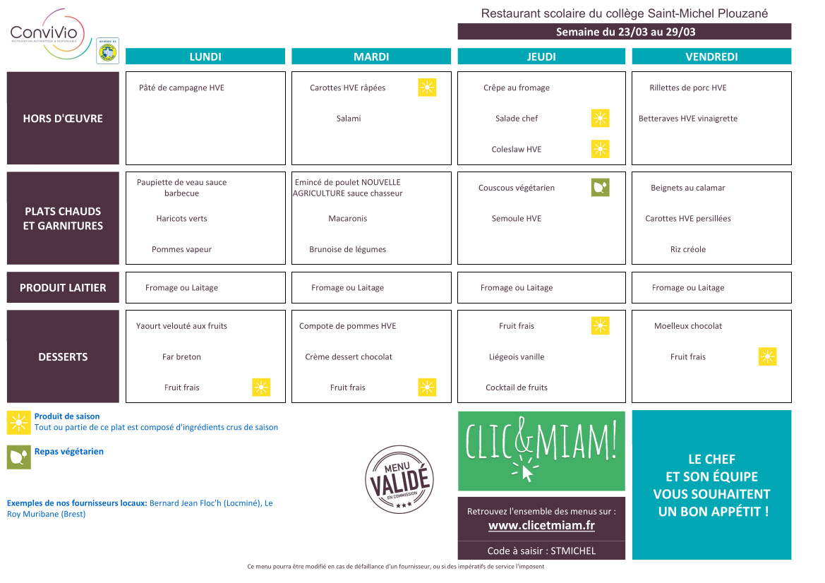 7H30 - 18H00 du lundi au vendredi. Mercredi : 7H30 - 12H15.