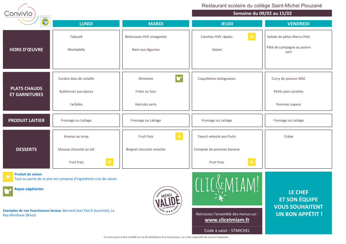 7H30 - 18H00 du lundi au vendredi. Mercredi : 7H30 - 12H15.